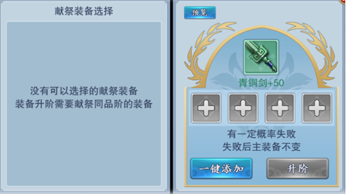 升阶合成,保留被合成装备的最高星级和强化等级;