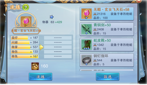 作用:消耗洗练石,来获得装备的额外属性加成;