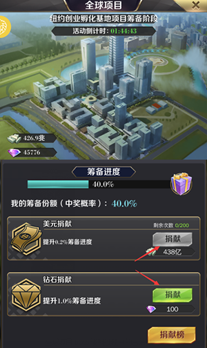 【幸运大奖】幸运大奖主要是两个,一个是全球项目捐献过程的筹备幸运奖,还有一个全球项目BOSS谈判过程中的击杀奖励,这两个幸运大奖都可以获得不错的贡献。