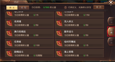 在活动界面中玩家可以看到每天的行侠记录,正所谓日行一善,侠之大义者!
