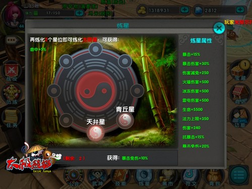 《太极熊猫》中战斗力是决定着角色整体战斗实力的标志,目前玩家提升战斗力主要通过装备、练星、技能、武神、符文这五个系统来提高。