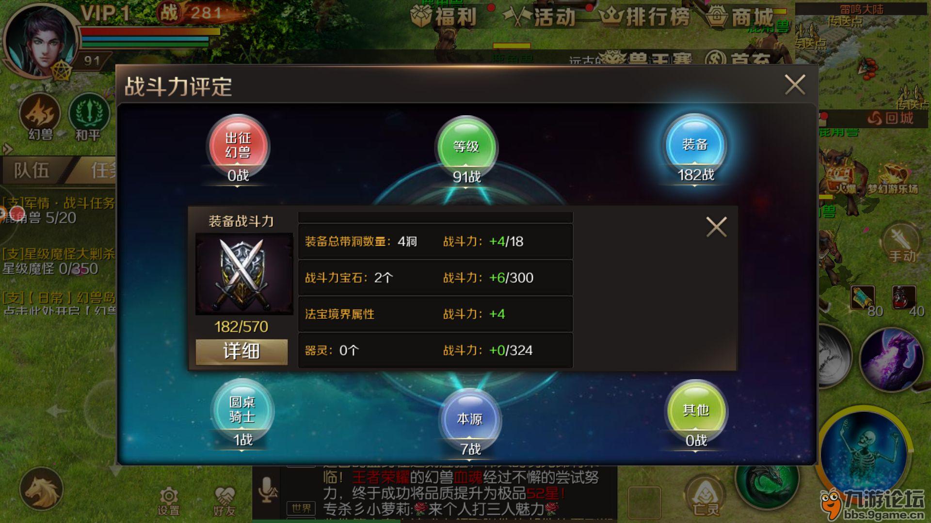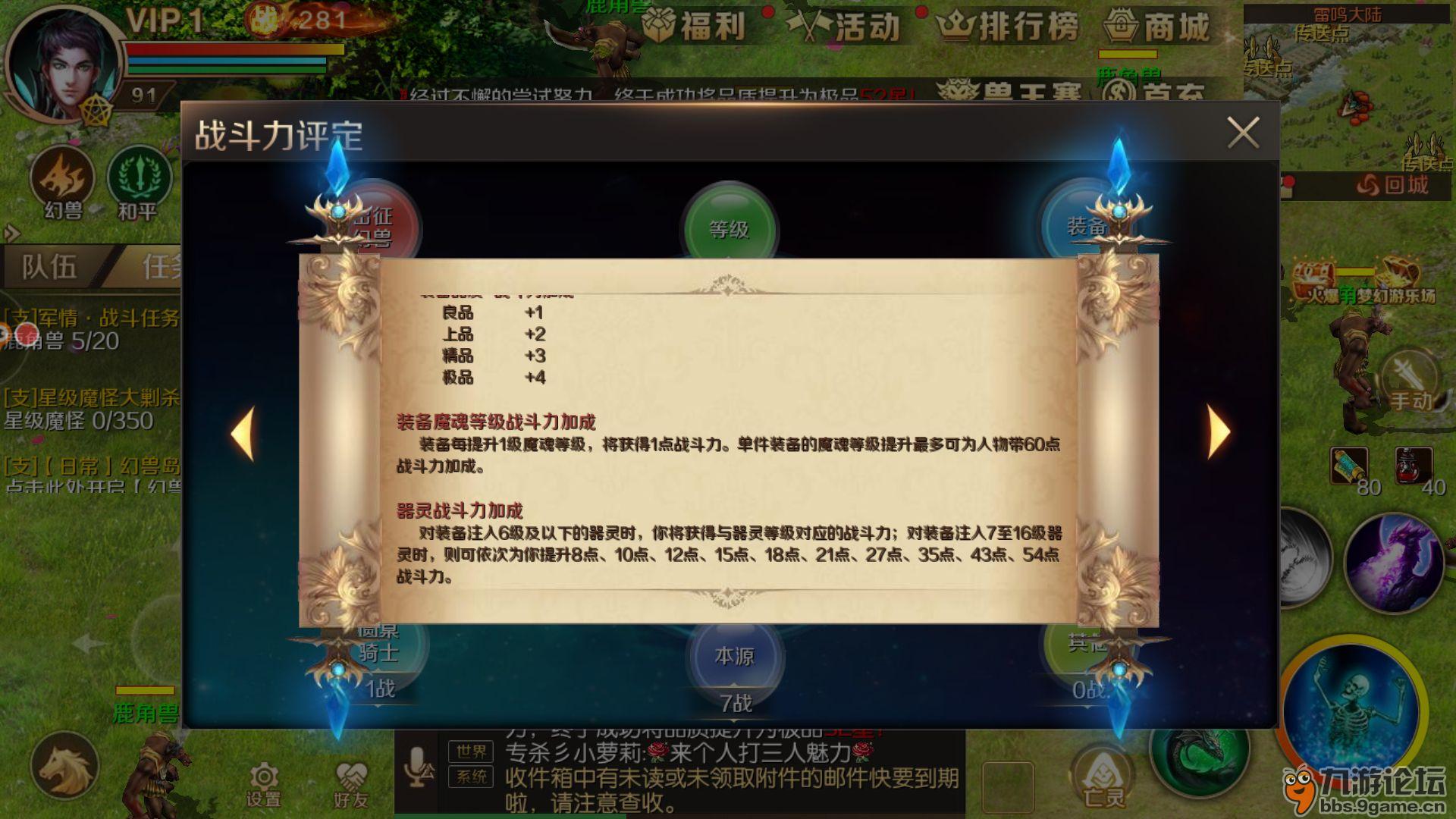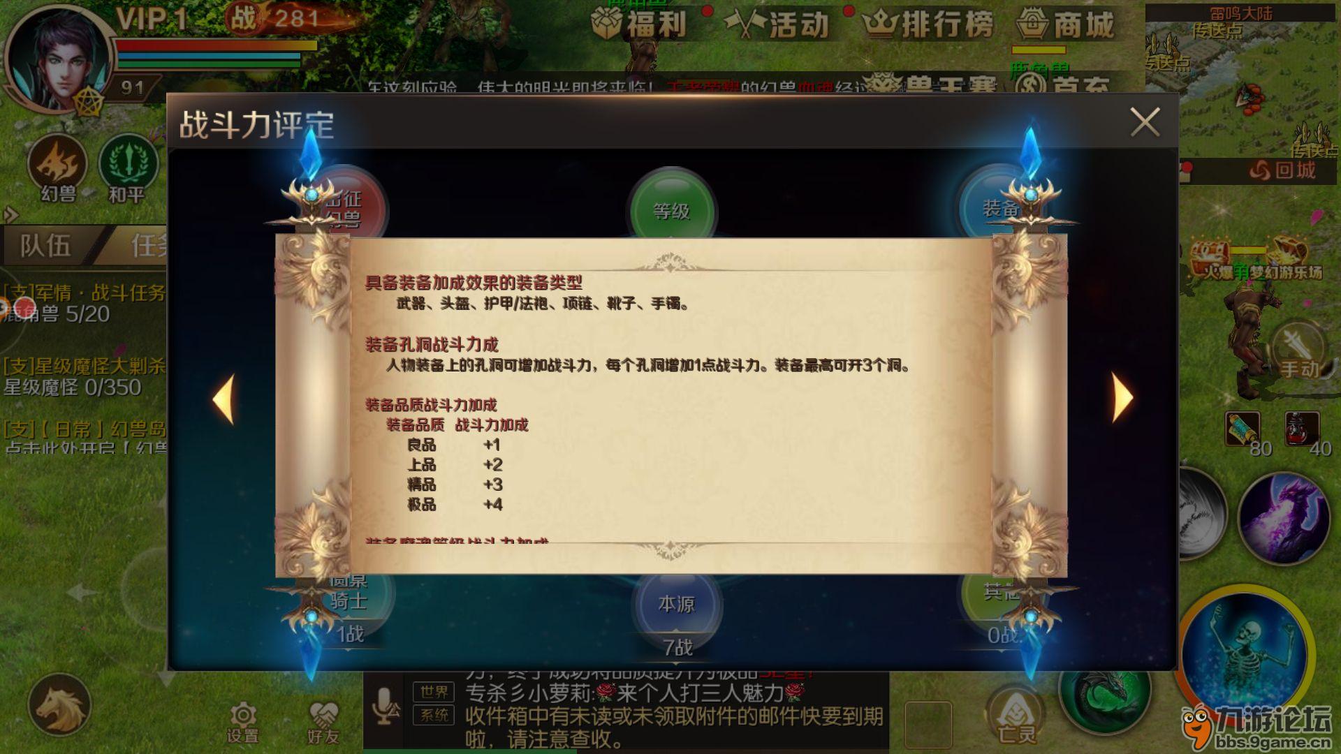 由于战斗力组成内容较多这次分成两次来介绍,先介绍等级,出征幻兽,装备这三个部分。