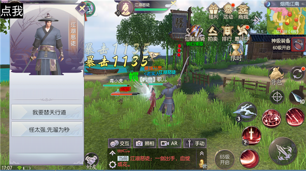江湖纷乱,有恶亦存善。人物等级达到55级即可开启此玩法,教训江湖恶徒行侠仗义。少侠可以选择单人挑战也可跟小伙伴组队进行挑战。歌儿温馨提示,此活动仅在每日12点-24点整点开启哦,可以参加10次挑战,超过后将不再获得经验收益。