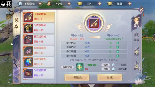 达到一定等级之后就开始强化身上的装备,优先强化武器、鞋子和腰带,这三个部位可以增加攻击力,获得的战力加成会更多。