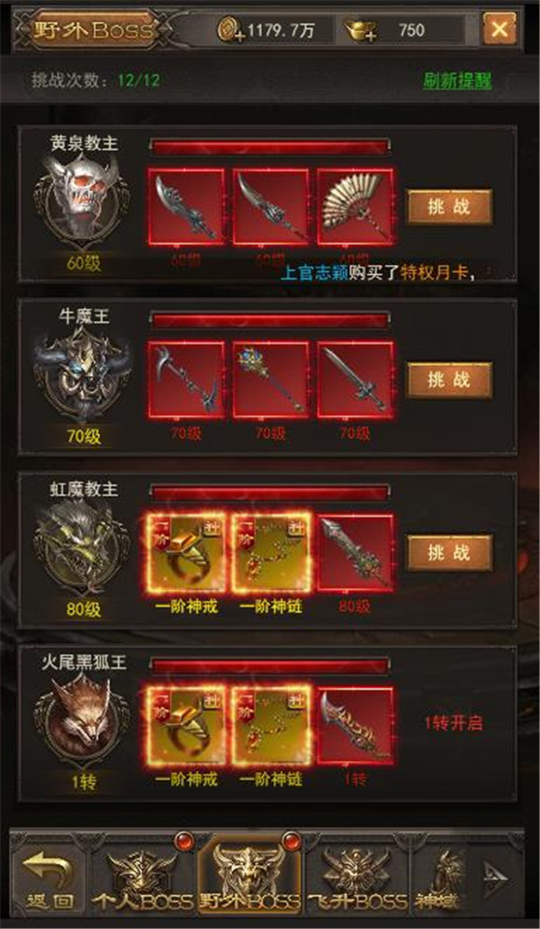 对于BOSS归属5倍的奖励,我反正是还没有体验过,我个人也很少去PK,毕竟野战跟竞技场基本看脸,但对于经常打BOSS的人来说,主提升道士是很有效果的。