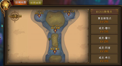 进入副本后,点击地图可以看到BOSS的分布位置。这时,玩家就可以根据自身实力情况挑选目标啦。