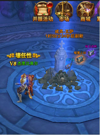 击杀BOSS后,画面中会出现BOSS墓碑,并显示该BOSS的刷新时间。