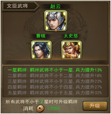 不断升级羁绊,可以获得更高的兵力提升,升级之前可要准备好铜钱哦~