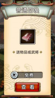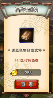 2.高级召唤:每 46 小时可免费抽取 1 次,单次抽取花费 288 黄金,10 连抽必得 1 位武将。