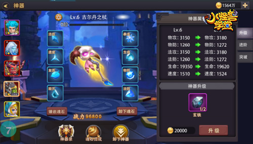 2.升级:神器可通过玄铁升级,每达到整10等级,可进行品阶突破,突破会大幅提升神兵属性;