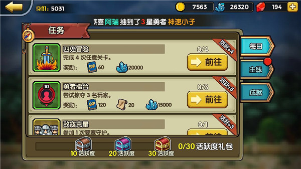 在世界地图中可以通过神秘相遇系统刷取王牌勇者碎片,每次消耗30份食物,相对的也能获得30点经验。