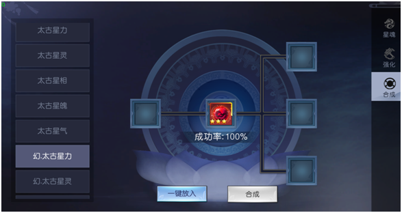 星魂合成:觉得自己的星魂还是不够强,没关系,我们还有星魂合成功能,我们能通过这个功能把我们重复获得的星魂合成更强大的存在。
