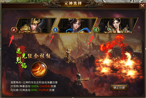 首先创建游戏角色,选择自己喜欢的游戏职业,开始你精彩的传奇之旅。