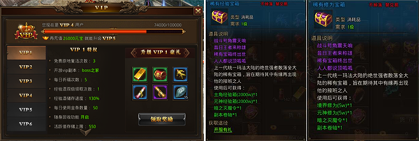 首充还额外赠送VIP特权还赠送1元宝礼包和888元宝礼包,礼包内物品非常丰富让你升级更加快速。