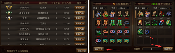 这样能大大提高玩家们的交流和游戏装备的利用,促进玩家感觉,提高行会整体实,在游戏行会对战中取得更多优势。其中还有每天的行会任务,和兄弟们共同完成,一起得到丰富的奖励,共同为行会升级排名贡献力量。