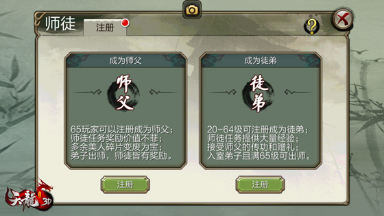 社交不仅仅能让你们更好地体验游戏,同时也能提供大量经验和奖励,帮助你更好地成长。比如20级开启的拜师,和65级开启的成为师父。师徒每天有专属互动,包括任务、传功、赠礼等,师徒双方可以互惠互利,携手升级。