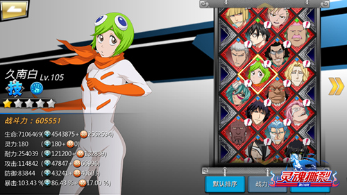《灵魂撕裂》中久南白属于技类角色,虽然整体实力不如一护、蓝染等主战角色,但是近身肉搏的战斗风格还是十分有趣的。作为副队长级角色,久南白相对同水平角色来说暴击属性十分出色但灵力相对较差,或许这可以解释她为什么很少使用斩魄刀进行战斗。当然,灵活的身法配合高攻击力,久南白就算是近身肉搏输出能力也并不输给其他副队。