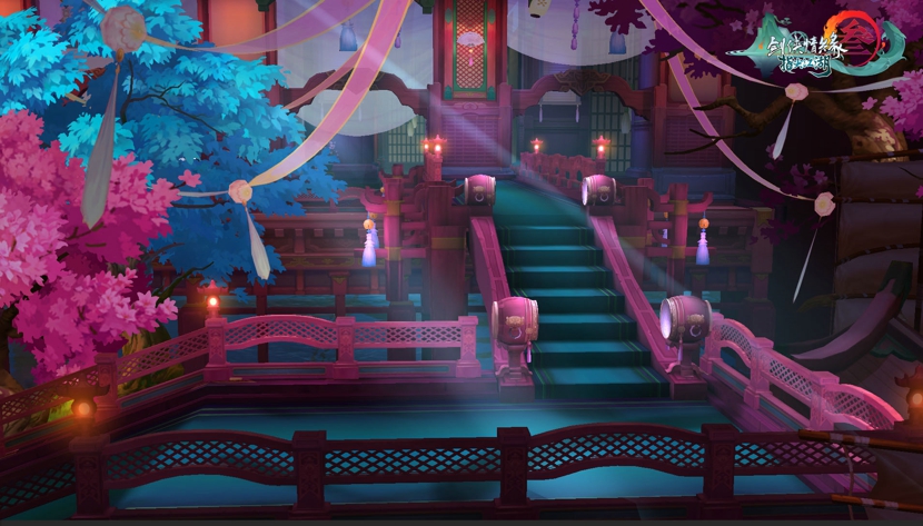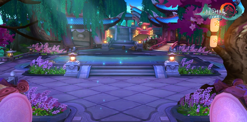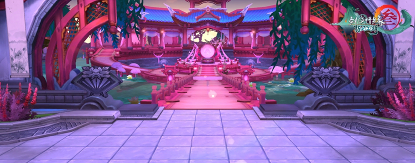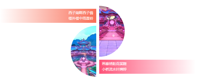 以剑舞闻名天下的七秀坊,门派中自然不会缺少用以展示的舞台。坊中的水云坊堪称天下第一舞池,此处地形开阔,可供数百人同时起舞。地面上铺着厚厚的绒毯,可供人裸足行走。居中的舞台上有一巨鼓,十三钗之一的鹿无双就曾在此表演,舞姿曼妙,惊艳四方。