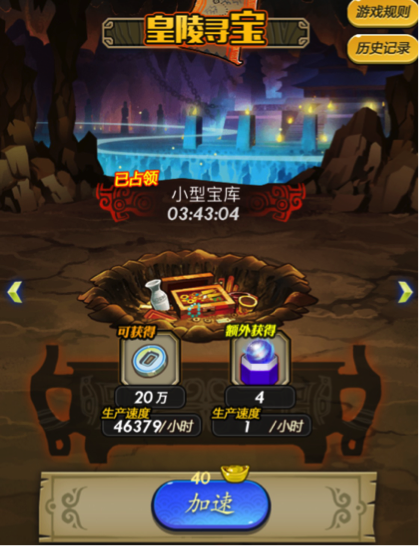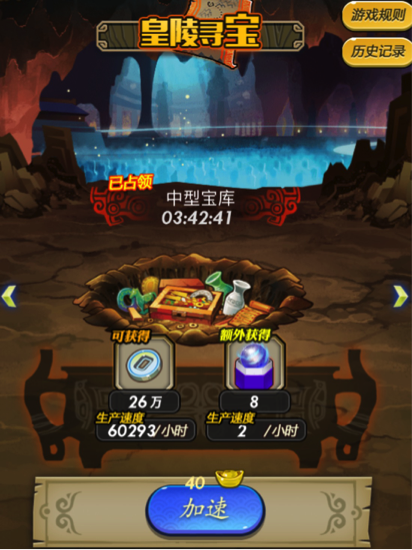 3.中型宝库:产出银币,额外产出各类丹或元宝,需要三名玩家攻占。